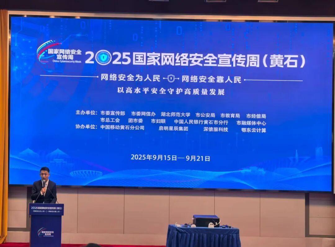 2025年9月12日,2025年国家网络安全宣传周黄石市活动在湖北师范大学正式启动。本次活动以“网络安全为人民,网络安全靠人民——以高水平安全守护高质量发展”为主题,旨在凝聚全社会网络安全共识,提升全民防护能力。启动仪式上,新潮信息被正式授予“2025—2026年度黄石市网络安全应急服务技术支撑单位”称号,成为黄石市网络安全保障体系的核心技术力量之一。