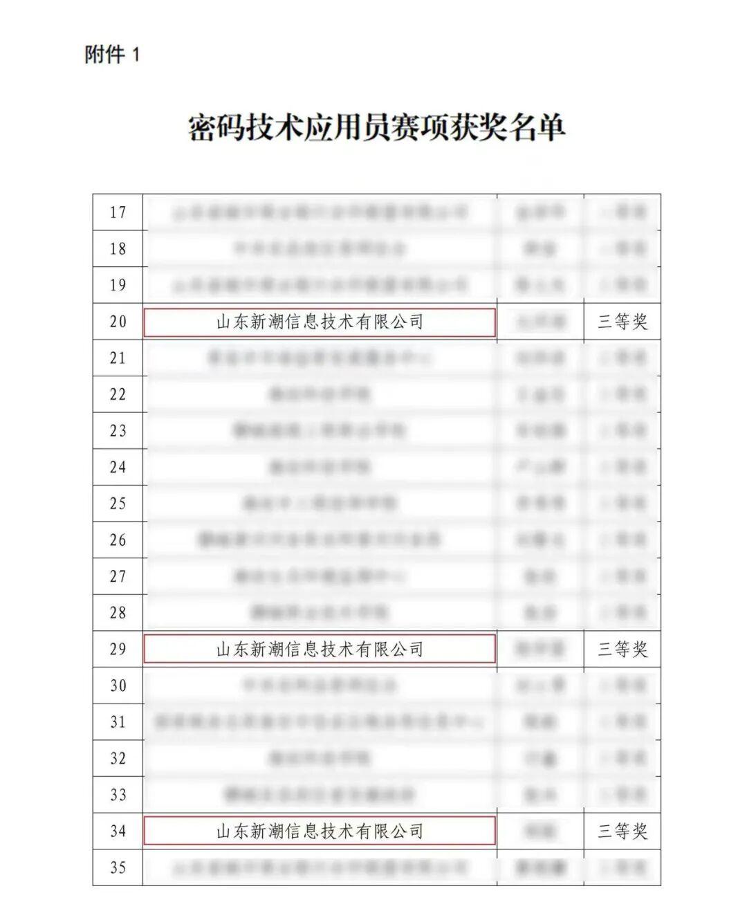 近期,山东省“技能兴鲁”职业技能大赛-第三届山东省数据安全职业技能竞赛密码技术应用技术员赛项在山东信息职业技术学院落下帷幕。经过激烈角逐,新潮信息“熵增密码团队”三名成员在此赛项中表现卓越,荣获三个三等奖,充分展现了公司在密码技术应用领域高素质技术技能人才培养方面的雄厚实力。